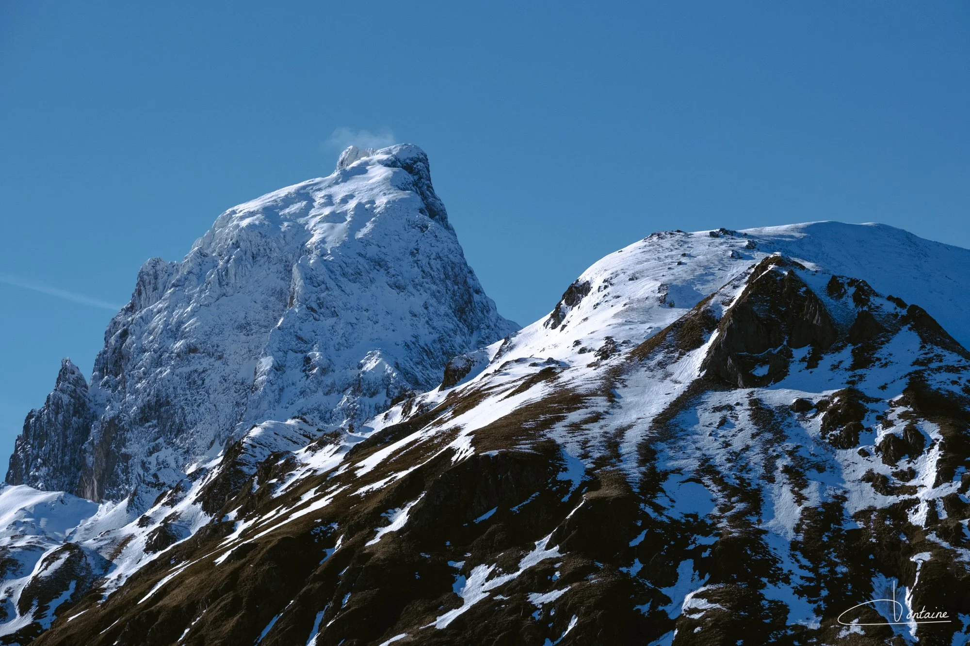 La vallée d’Ossau est un endroit où je me sens bien. Quand je reviens dans les Pyrénées, après des heures de route (et m’être fait secouer le portefeuille sur la section Langon - Pau), un sourire s’esquisse lorsque le pic du Midi d’Ossau se présente; je sais que j’arrive à la maison. D’ailleurs, vous avez son profil sur la photo ci-contre, avec un tout petit nuage scotché sur sa tête.