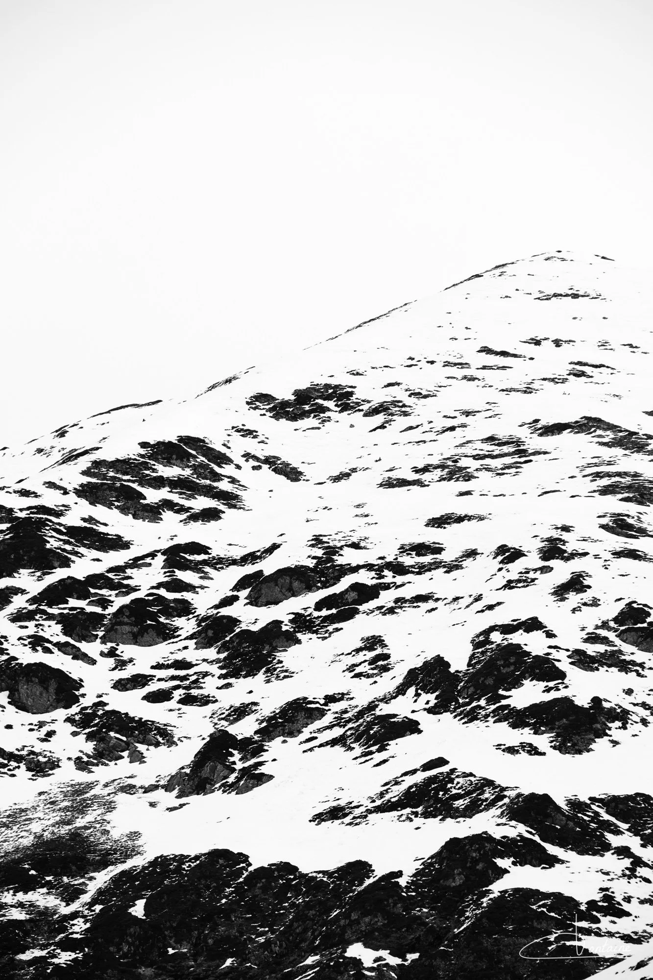 Nous sommes à 1270m d’altitude, il fait 2° dehors et le vent est inexistant. Tout cela pour dire que les conditions sont bonnes. Les sommets sont saupoudrés de neige, parfait pour faire des images très contrastées !